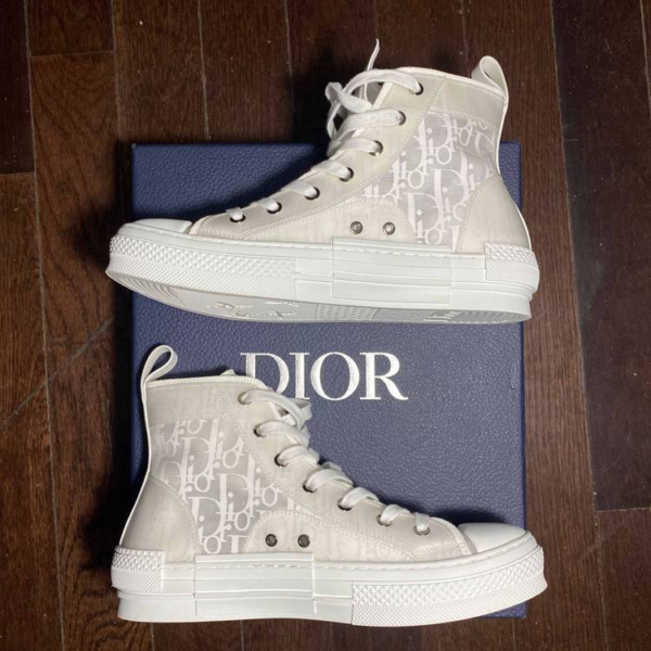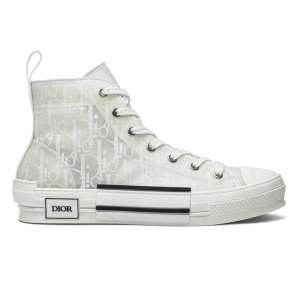 The B23 League high-top sneaker is set apart by its layering of transparent paneling and white and black Dior Oblique canvas. Essential details, such as eyelets and a lace-up front, a white rubber sole, a rounded and reinforced toe as well as a rear tab recall the codes of the classic high-top style. The sneaker is further enhanced with contrasting details on the sides, including a Dior signature, and pairs easily with any casual outfit.