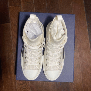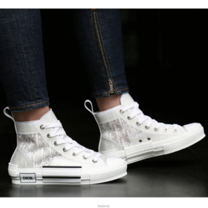 The B23 League high-top sneaker is set apart by its layering of transparent paneling and white and black Dior Oblique canvas. Essential details, such as eyelets and a lace-up front, a white rubber sole, a rounded and reinforced toe as well as a rear tab recall the codes of the classic high-top style. The sneaker is further enhanced with contrasting details on the sides, including a Dior signature, and pairs easily with any casual outfit.