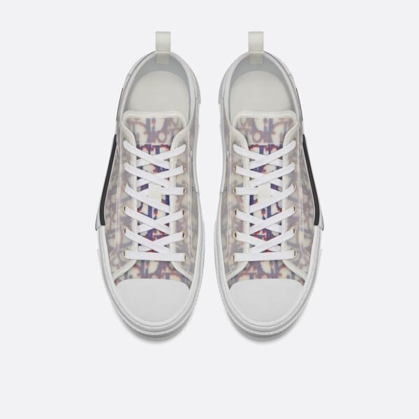 The B23 League low-top sneaker is set apart by its layering of transparent paneling and white and black Dior Oblique canvas. Essential details, such as eyelets and a lace-up front, a white and beige rubber sole, a rounded and reinforced toe as well as a rear tab recall the codes of the classic low-top style. The sneaker is further enhanced by contrasting details on the sides, including a Dior signature, and will pair easily with any casual outfit.