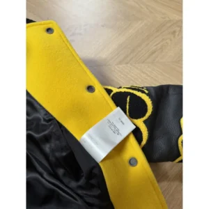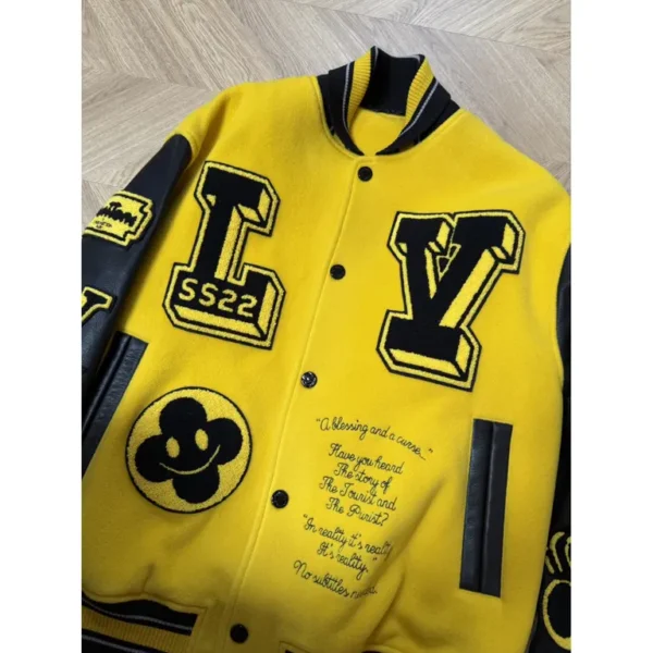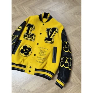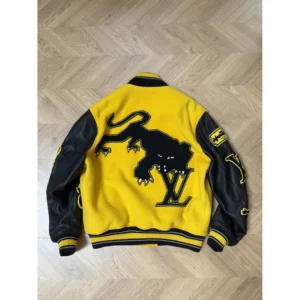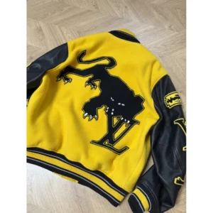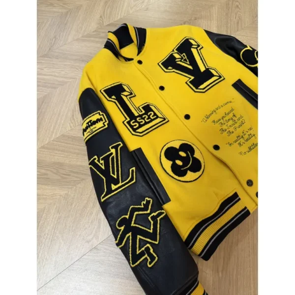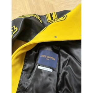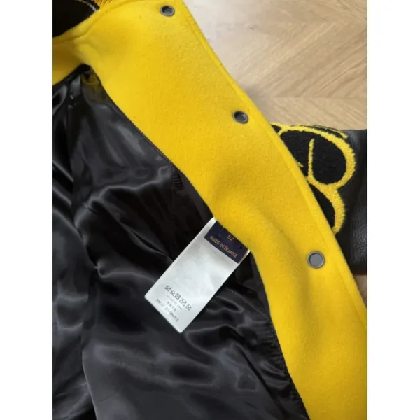 Louis Vuitton Leather Embroidered Varsity Jacket Black & Yellow – a varsity jacket with a bold streetwear DNA combined with luxury.
