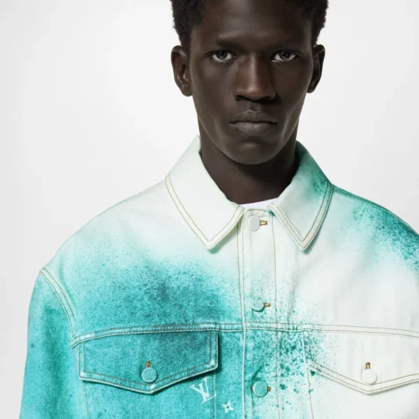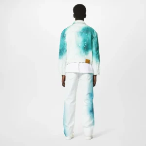 This denim jacket is distinguished with a tie-dye-inspired LV Spray motif in a bright seasonal green, through which contrasting white Monogram signatures emerge. This standout piece has a boxy fit with dropped shoulders and has been stone-washed for a soft finish. An LV jacqueron adds a final signature.
