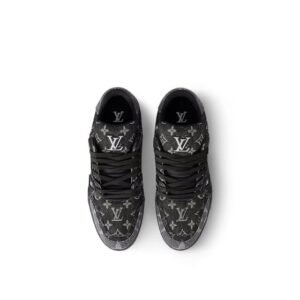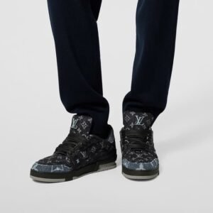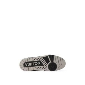 Crafted from supple white calf leather, this version of the LV Trainer sneaker is part of the season’s Rainbow ready-to-wear capsule collection. This cult model was designed by Louis Vuitton Artistic Director Virgil Abloh and inspired by vintage basketball sneakers. Its elaborately constructed upper, which features rubber LV and Vuitton signatures, takes seven hours to stitch.