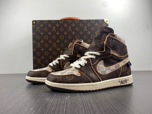 The Shoe Surgeon has revealed a custom Air Jordan 1 sneaker, designed as a tribute to Virgil Abloh‘s capsule of Louis Vuitton and Nike Air Force 1 sneakers featured in the label’s spring 2022 collection. Dubbed the J1 High and Low Legacy, the shoe is crafted from authentic Louis Vuitton Damier and logo bags while a raw edge underlay echoes the original design’s piping detail. Paired with a leather orange luggage tag, gold foil logos peek on the lateral side and heel adding depth and dimension.