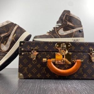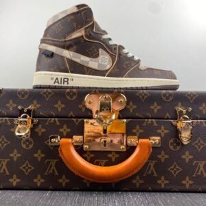 The Shoe Surgeon has revealed a custom Air Jordan 1 sneaker, designed as a tribute to Virgil Abloh‘s capsule of Louis Vuitton and Nike Air Force 1 sneakers featured in the label’s spring 2022 collection. Dubbed the J1 High and Low Legacy, the shoe is crafted from authentic Louis Vuitton Damier and logo bags while a raw edge underlay echoes the original design’s piping detail. Paired with a leather orange luggage tag, gold foil logos peek on the lateral side and heel adding depth and dimension.