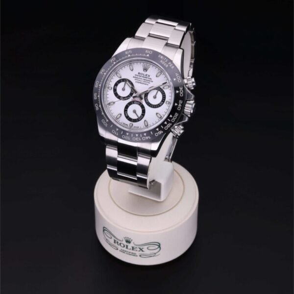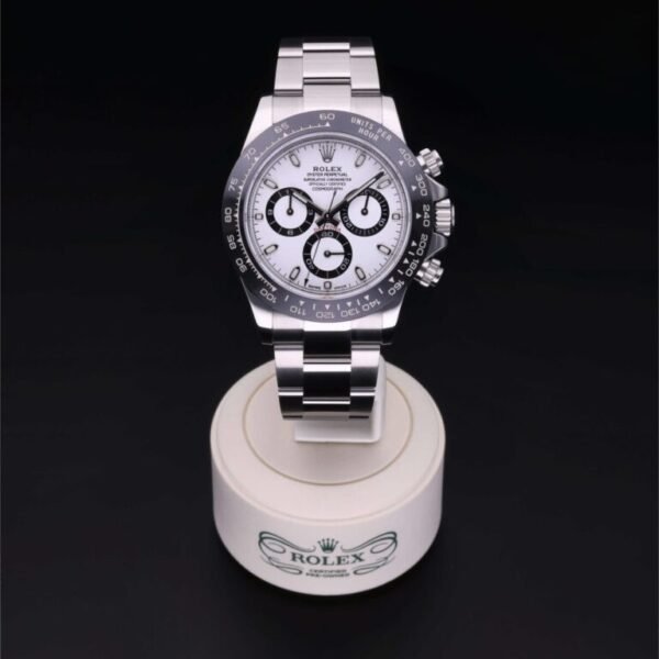 Since its launch in 1963, the Oyster Perpetual Cosmograph Daytona has been the benchmark for those with a passion for driving and speed. Today, this iconic chronograph is legendary for its reliability thanks to its high-performance mechanical movement entirely developed and manufactured by Rolex. Using the tachymetric scale on the bezel, the wearer can measure time intervals or determine average speeds.