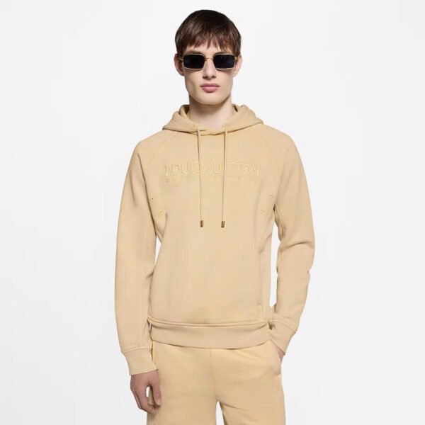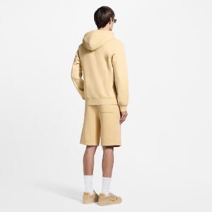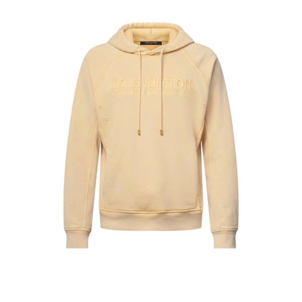 Inspired by effortless summer days, this pale yellow cotton hoodie is perfect for lounging after a dip in the ocean. It is garment-dyed for a washed vintage look and embellished with tone-on-tone embroidered signatures and eyelets. Soft ribbing under the sleeves and down the sides further distinguishes this piece. Matching shorts make a sunny set.